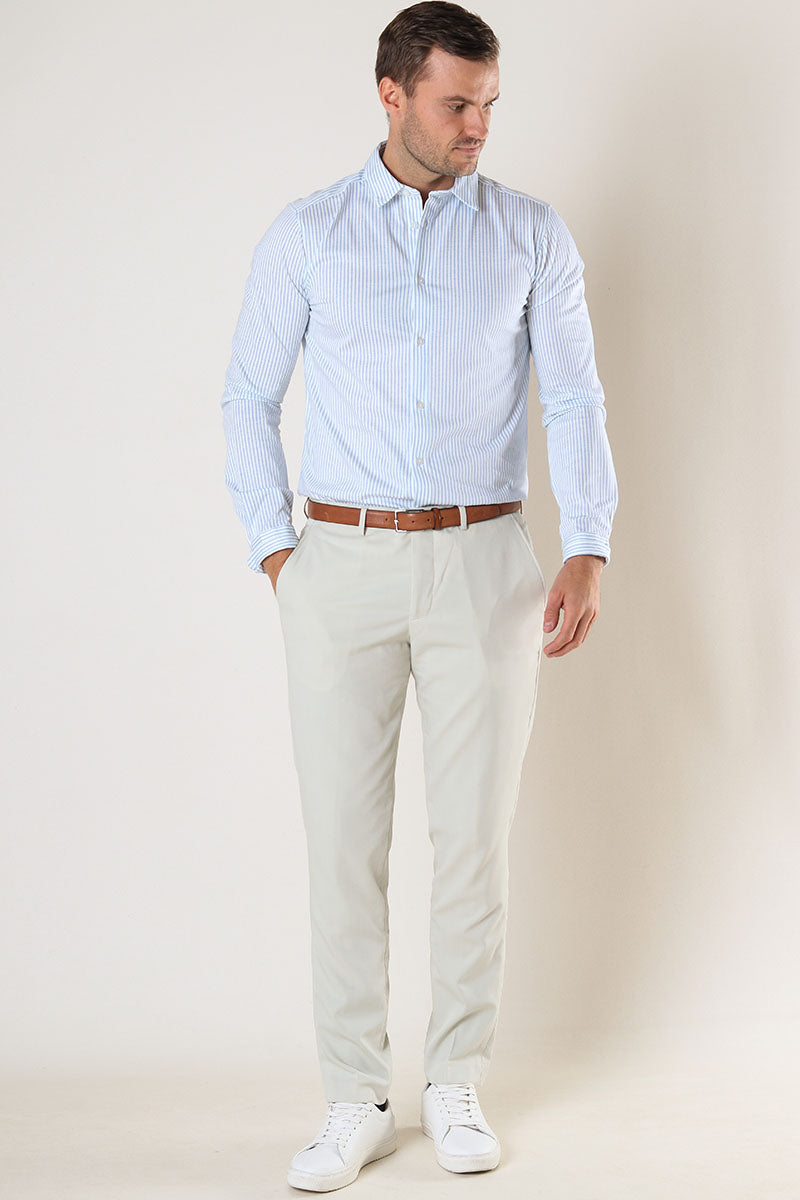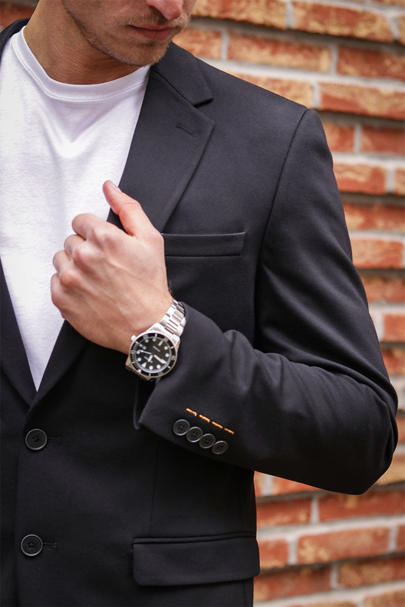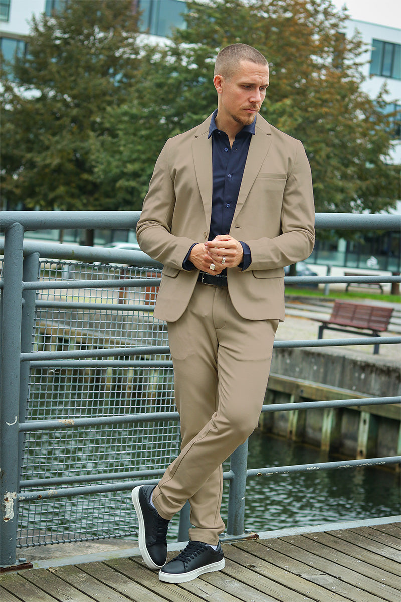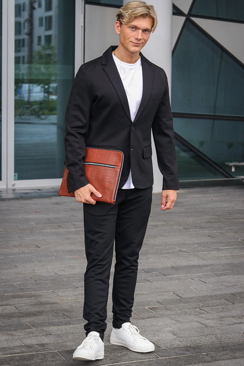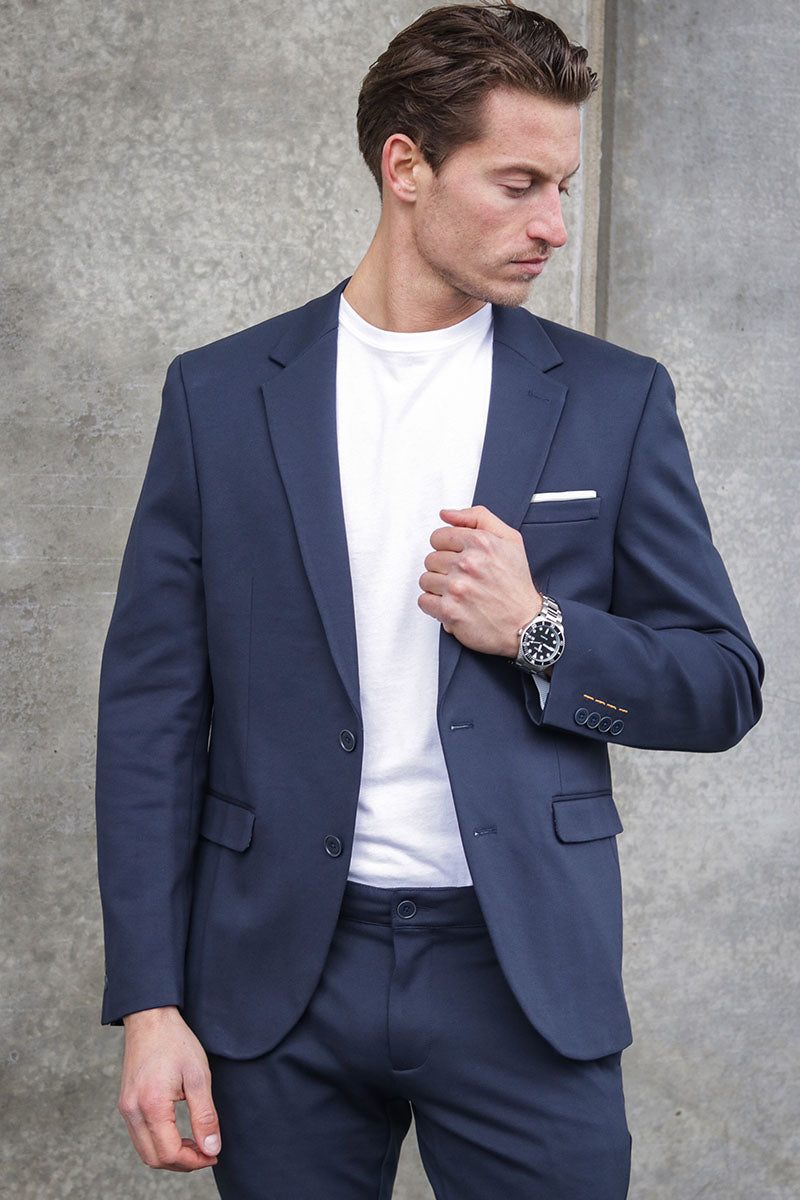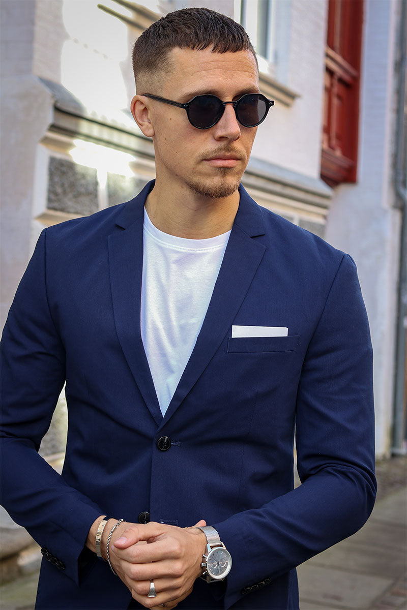 Die perfekte Passform des Anzugs hängt von Ihrem Körperbau ab. Wenn Sie eher schlank sind, wird Ihnen ein schmal geschnittener Anzug gut stehen. Wenn Sie eine breitere Silhouette haben, ist ein weiter geschnittener Anzug genau das Richtige für Sie. Aber egal für welchen Anzug Sie sich entscheiden, mit einem Modell von 2trendy können Sie nichts falsch machen. Sie können Ihren Anzug auch jederzeit zu einem Schneider bringen, wenn er angepasst werden muss. Besonders gut sehen Sie aus, wenn die Ärmel des Blazers bis zu Ihrem Handgelenk reichen und etwa einen Zentimeter Platz für das Hemd lassen. Das lässt Sie gepflegt und stilvoll auftreten. Auch mit der Länge der Hose können Sie experimentieren: Heutzutage sind kürzere Hosen in Kombination mit Slippern sehr beliebt. Wer jedoch rundum klassisch aussehen möchte, ist mit einer Hose in Standardlänge und einem Paar Anzugschuhen aus Leder am besten beraten.