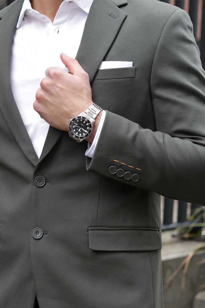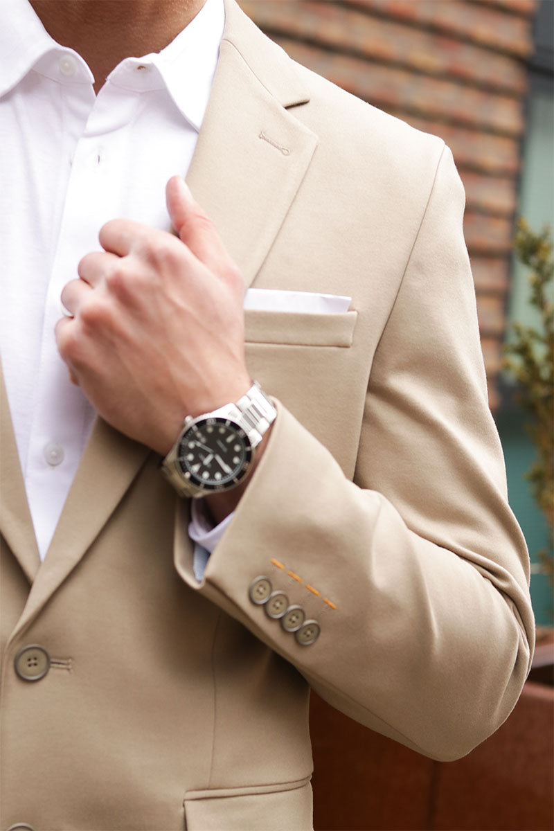 Wählen Sie einen Anzug, der zu Ihrem Körper passt und lassen Sie die Ärmel an Ihrem Handgelenk enden.