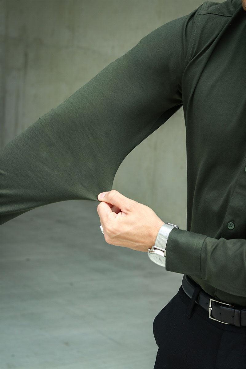 Die Passform eines Oberhemdes ist vielleicht das Wichtigste, was man beachten sollte, wenn man seinen Look aufwerten möchte. Das gilt sowohl für Standard-Hemden als auch für unsere Comfort Shirts. Da sich ein Obehemd mit Stetch-Anteil an Ihren Körper anpasst, kann sich das 2trendy Comfort-Hemd für manche etwas klein anfühlen. Deshalb empfehlen wir Ihnen, eine Nummer größer zu wählen, wenn Sie normalerweise zwischen zwei Größen liegen: Wenn Sie also entweder Medium oder Large tragen, empfehlen wir Ihnen, Large zu wählen. Dies gewährleistet die bestmögliche Passform und sorgt dafür, dass Sie sich wohl fühlen und bereit sind, Ihren Tag zu rocken.