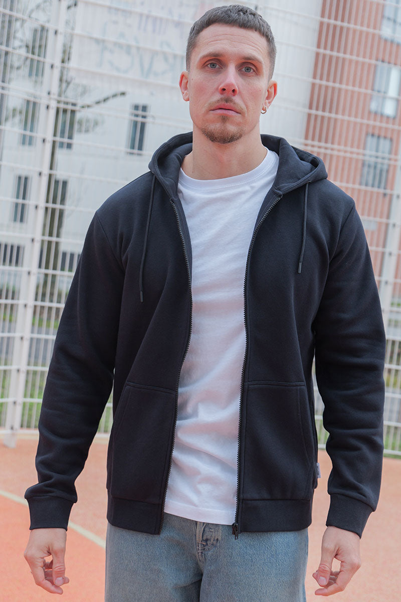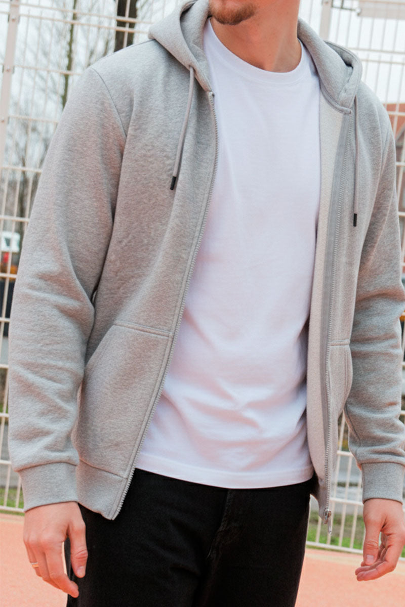 Ein Hoodie muss nicht unbedingt ein großes, sperriges Sweatshirt sein, das man über den Kopf zieht und sich dabei das Styling der Frisur ruiniert, die man gerade erst gebändigt hat...! Die unkomplizierte Alternative sind sportliche Reißverschluss-Hoodies - und davon können wir Ihnen bei 2trendy ebenfalls eine ansehnliche Auswahl anbieten. Reißverschluss-Kapuzenpullover sind ideal geeignet zum schnellen Überziehen über T-Shirts, Polohemden oder auch Pullover, wenn es draußen kühler wird. Oder lassen Sie sich vom Festival-Stil inspirieren und binden sich Ihren Reißverschluss-Hoodie als „Reserve-Schicht“ um die Taille, oder legen ihn über die Schultern, um Ihrem Outfit einen zusätzlichen schicken Akzent zu verleihen. Übrigens: sollten Ihnen die langen Kordelzüge eines Hoodies bisher immer ein Rätsel gewesen sein - sie dienen schlicht dazu, um die Kapuze festzuziehen und vorne zu verknoten. Egal, welchen Stil Sie bevorzugen, schauen Sie einfach bei 2trendy vorbei und entdecken Sie Ihren neuen Lieblingshoodie!