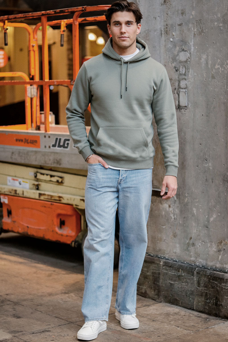 Eine Regular Fit Passform ist die Standard-Version des klassischen Hoodies, wie man ihn kennt. Ein Regular Fit Schnitt bietet ausreichend Platz, um bequem ein T-Shirt darunter tragen zu können, sitzt aber um die Taille herum nicht zu locker. Diese Passform ist ideal, wenn Sie einen vielseitig einsetzbaren Kapuzenpullover suchen, der sich zu unterschiedlichen Anlässen tragen und mit diversen Hosen kombinieren lässt.