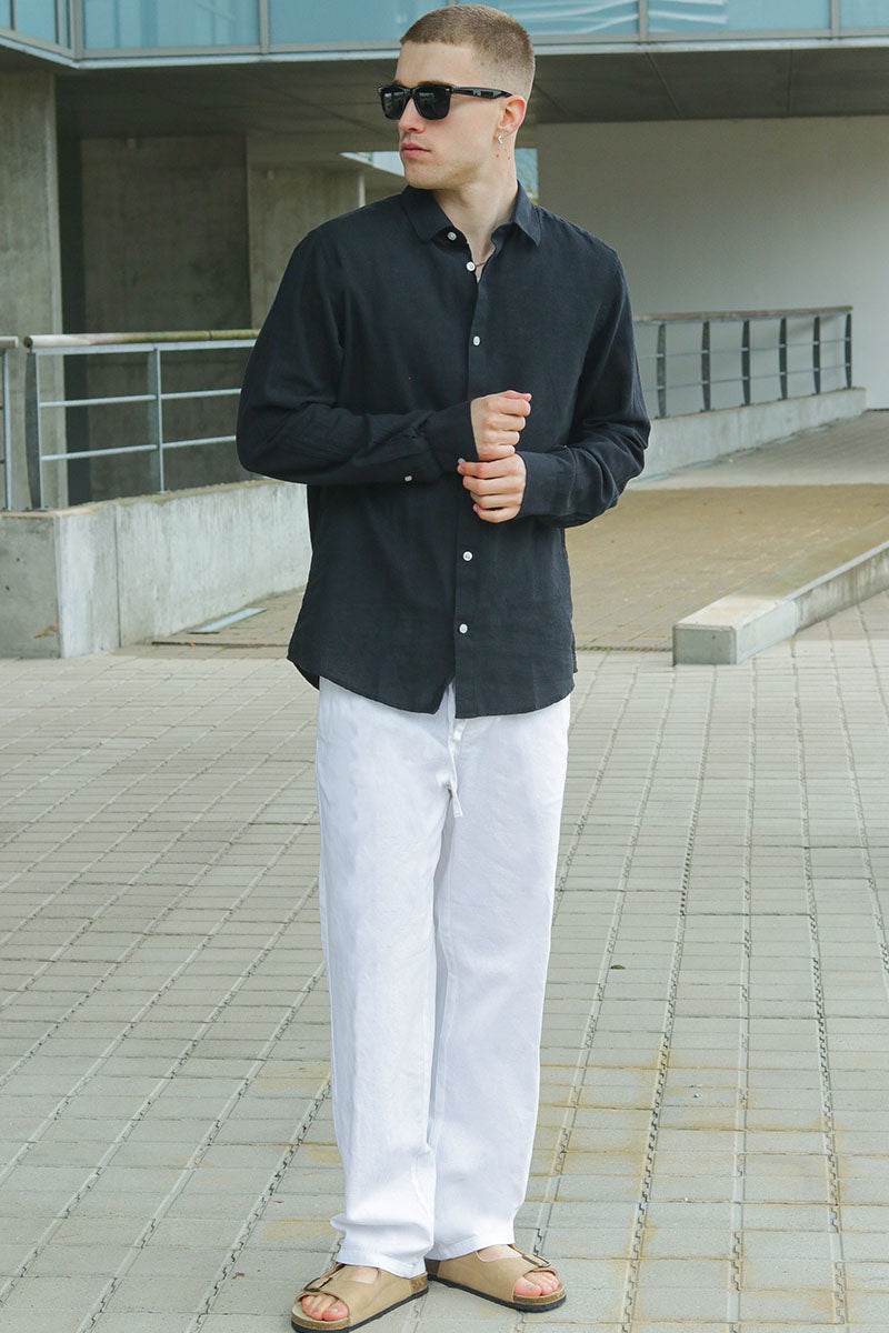 Wie bei den meisten anderen Kleidungsstücken lässt sich auch bei Leinen die Passform so anpassen, dass Sie genau den Look und Stil erreichen, den Sie wünschen. So wie mit T-Shirts ist es sehr beliebt geworden, Leinenhosen in Übergröße zu wählen. Dies erhöht den Komfort des ohnehin schon sehr bequemen Leinenmaterials und verleiht ihnen außerdem einen urbaneren, trendigen Streetwear-Look. Natürlich können Sie sich auch für eine schlankere Passform entscheiden, wie Sie es bei einer normalen Baumwoll-Hose tun würden. Kurz gesagt: auch Leinen-Bekleidung lässt sich wie jeder andere Stoff sowohl aufgepimpt als auch dezent tragen - je nach Anlass und gewünschtem Stil. Wenn Sie eine formellere Herren-Leinenhose für die Arbeit suchen, die für die heißen Sommermonate atmungsaktiver als gewöhnliche Hosen ist, stöbern Sie in unserer Leinenhosen-Kollektion. Hier ist für jeden Geschmack etwas dabei! Wenn Sie in den Urlaub in den sonnigen Süden fahren und sich vor allem entspannen möchten, eignet sich möglicherweise eine kurze Leinenhose mit Muster besonders gut. Ihre lange oder kurze Leinenhose können Sie entweder schlicht mit einem Baumwoll-T-Shirt und einer Sonnenbrille stylen, oder für einen formelleren Look, ihre lange Leinenhose mit einem eleganten Oberhemd (vielleicht auch aus Leinen) kombinieren. Auch die Passform lässt sich an Ihre persönlichen Vorlieben anpassen.