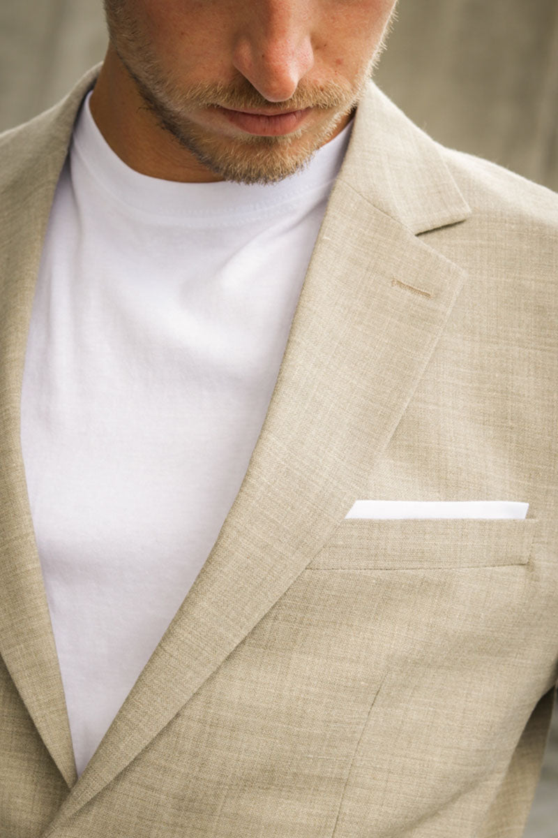 Einer der größten Vorteile von Leinen ist seine leichte und luftige Beschaffenheit, die es an einem heißen Sommertag besonders angenehm macht, diesen vielseitigen Stoff zu tragen. Vor allem an wärmeren Sommertagen - etwa bei einer ausgelassenen Sommerhochzeit oder einem gemütlichen Grillabend - sind unsere Leinenanzüge bequemer als ein Anzug aus dichtgewebten Material, damit Sie sich nicht zu sehr aufheizen.