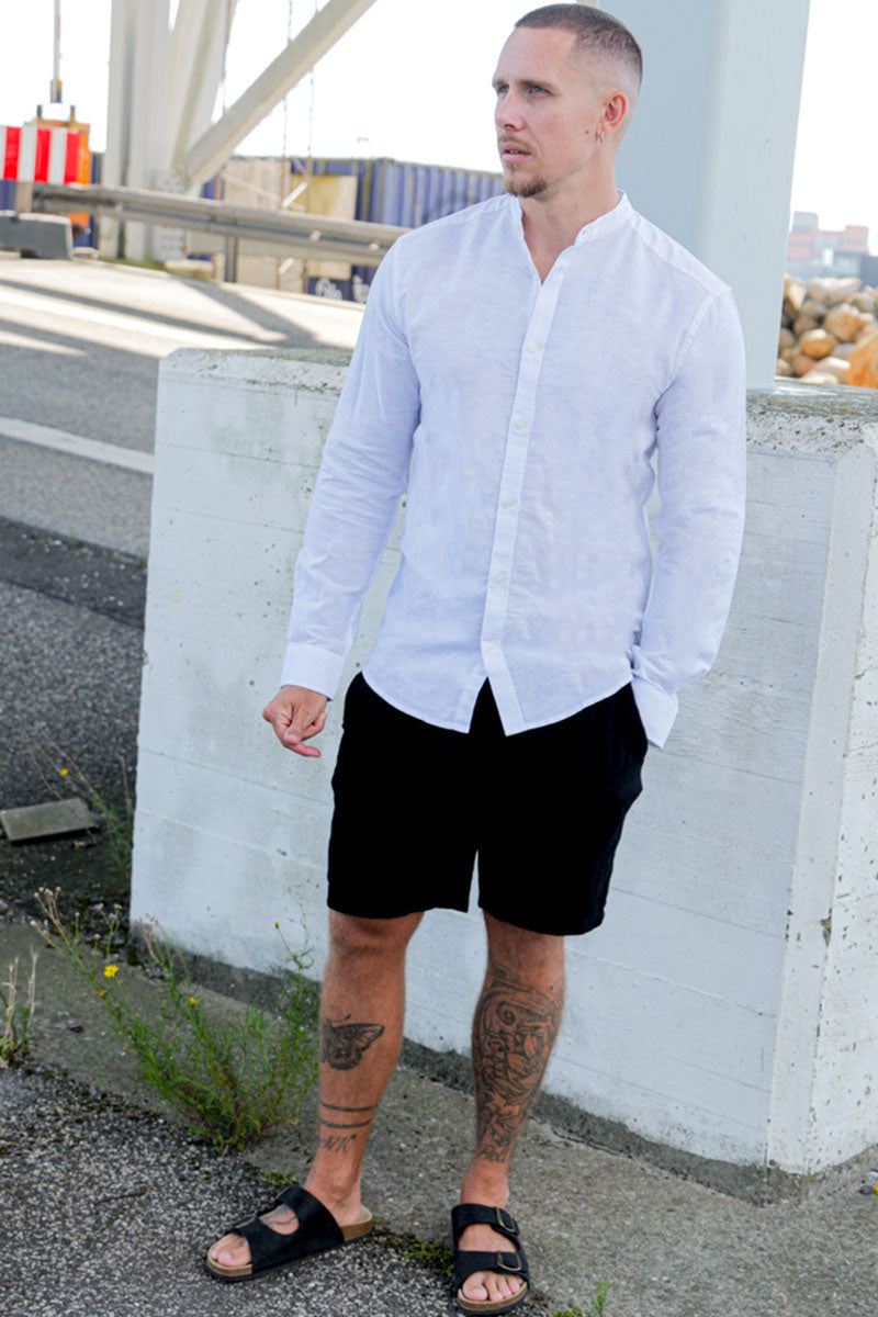 Wie bei den meisten anderen Kleidungsstücken lässt sich auch bei Leinen die Passform so anpassen, dass Sie genau den Look und Stil erreichen, den Sie wünschen. So wie bei T-Shirts ist es sehr beliebt geworden, vor allem kurzärmelige Leinenhemden in Übergröße zu wählen. Dies erhöht den Komfort der ohnehin schon sehr bequemen Hemden und verleiht ihnen außerdem einen urbaneren, trendigen Streetwear-Look. Natürlich können Sie sich auch für eine schlankere Passform entscheiden, wie Sie es bei normalen Baumwoll-Oberhemden tun würden. Kurz gesagt: auch Leinen-Bekleidung lässt sich wie jeder andere Stoff sowohl aufgepimpt als auch dezent tragen - je nach Anlass und gewünschtem Stil. Wenn Sie ein formelles Herren-Oberhemd für die Arbeit suchen, das für die heißen Sommermonate atmungsaktiver als gewöhnliche Oberhemden ist, probieren Sie eines unserer langärmeligen Leinenhemden. Wenn Sie in den Urlaub in den sonnigen Süden fahren und sich vor allem entspannen möchten, eignet sich möglicherweise ein kurzärmeliges Leinenhemd mit Muster. Das Gleiche gilt für Leinenhosen und Leinenshorts. Jedes dieser beiden Kleidungsstücke können Sie entweder schlicht mit einem Baumwoll-T-Shirt und einer Sonnenbrille kombinieren, oder Sie tragen ein Herren-Oberhemd dazu, vielleicht ebenfalls aus Leinen, für einen formelleren Look. Auch die Passform lässt sich an Ihre persönlichen Vorlieben anpassen.